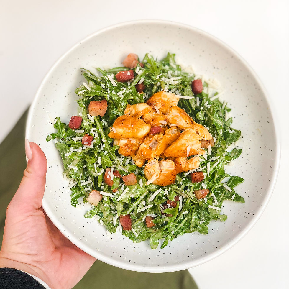 1 1/2 tbsp of complaint caesar dressing (like this one) or my (homemade dressing)